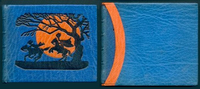 The full text of Washington Irving’s Legend of Sleepy Hollow is presented in this book that features original illustrations and a genuine Sleepy Hollow postage stamp as frontispiece. The stamped and inlaid leather cover design replicates the stamp design. A matching slipcase has a curved orange edge to evoke a sliver of moon.